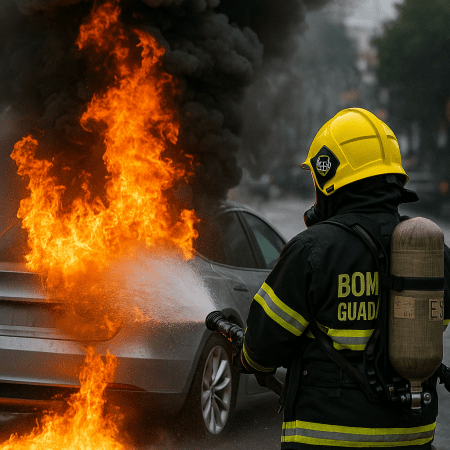 Guía del bombero: 7 pasos para extinguir un incendio en un coche eléctrico.