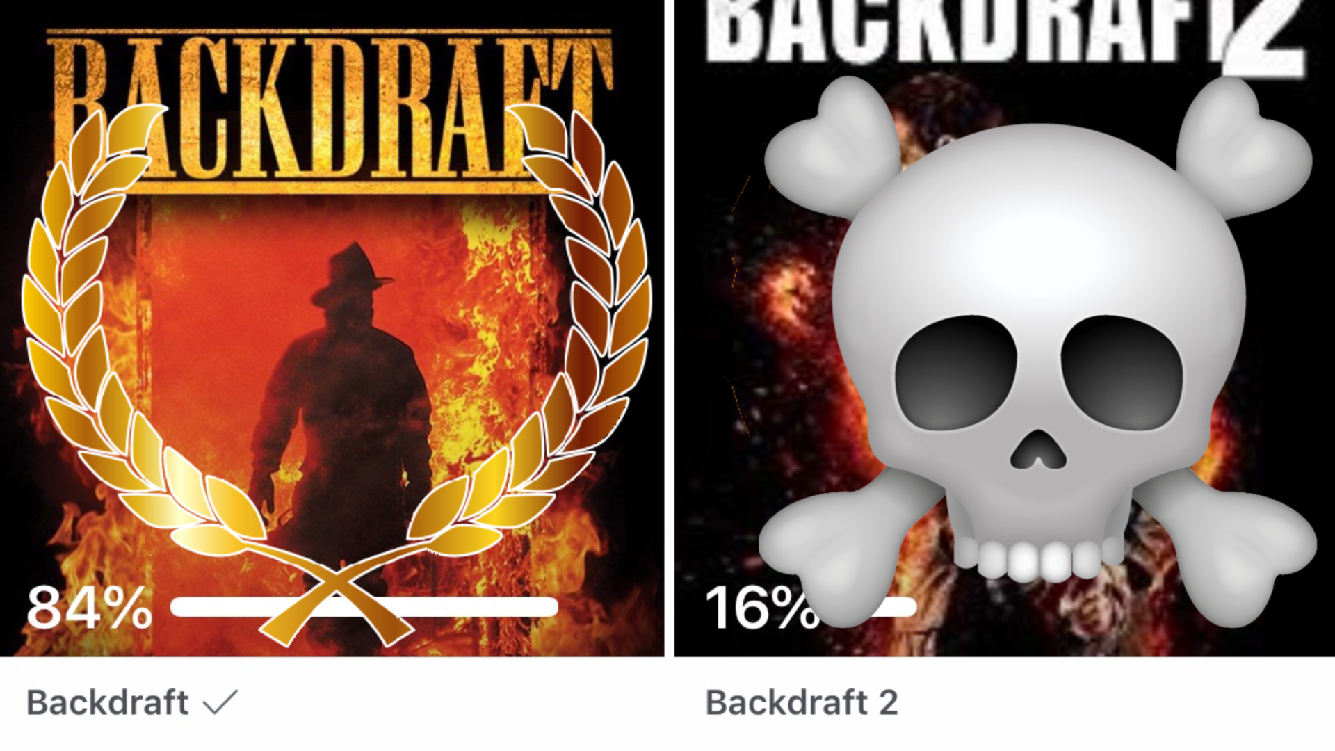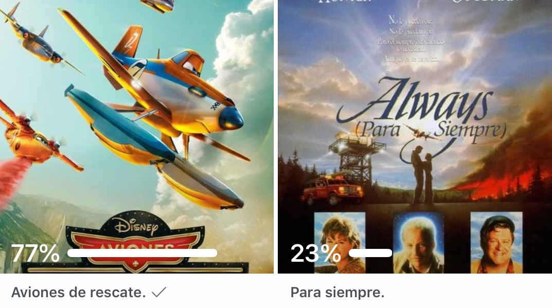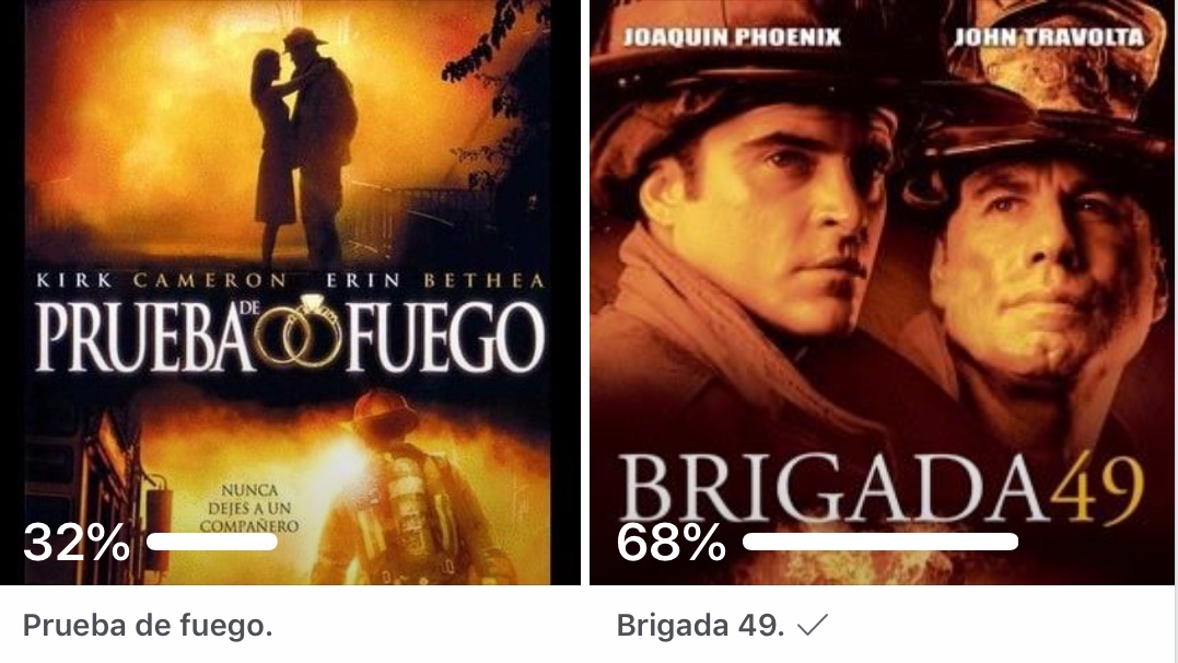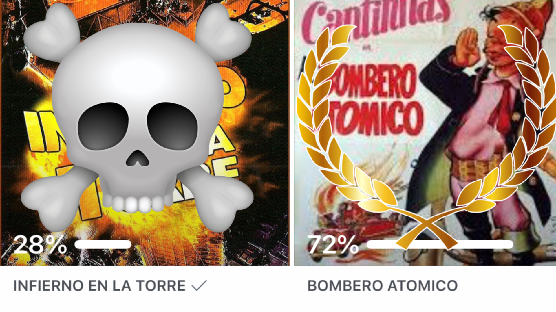 Después las colocamos en encuestas dentro de nuestra página en facebook y los resultados de la primera ronda nos sorprendió, se colocó el porcentaje de aceptación de cada película, comparándola con una que repercutió en el cine de la misma manera.