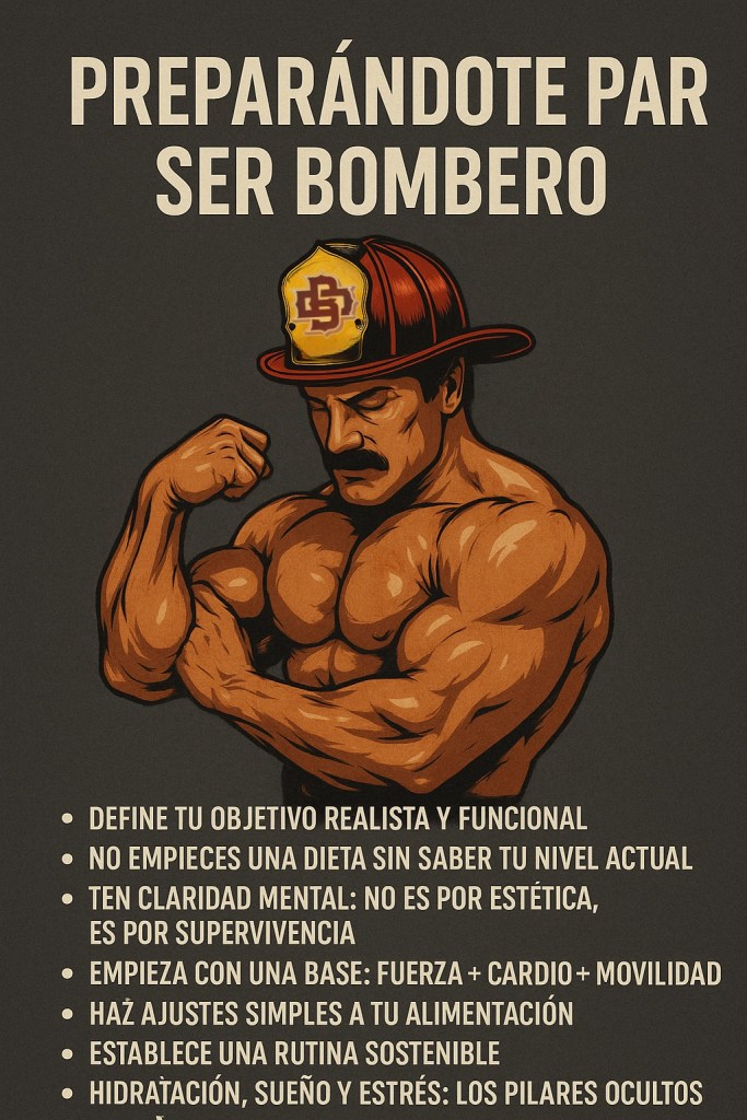No se trata de tener un cuerpo estético, sino de tener un cuerpo fuerte, resistente y útil. Pregúntate: ¿Voy a aplicar a bombero operativo? ¿Debo pasar pruebas físicas oficiales? ¿Quiero resistir incendios estructurales con ERA? ¿O quiero iniciar mi acondicionamiento general?